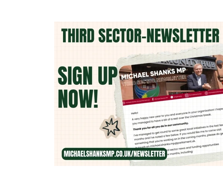 If you'd like to receive my newsletter in which I share news, funding advice, and other relevant updates for third sector organisations in the constituency please sign up below!